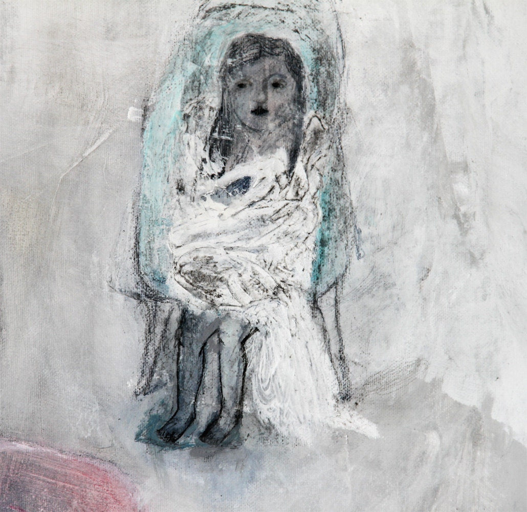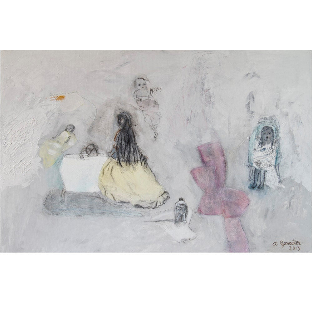 Large Abstract Painting canvas 40x26 Large wall Art mixed media ocher pink Spanish Art
