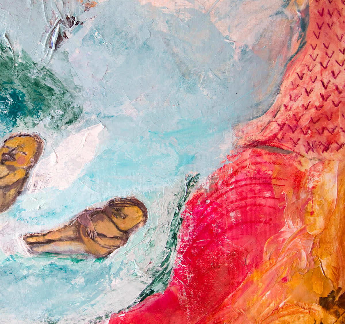 Large Original Painting Canvas wall Art pink turquoise textures modern art, Spanish Art