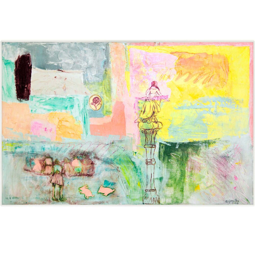 Lovely expressionist painting. A look mix of new and old. Her delicate colors and characters that compose it, make this painting perfect for that special corner of your home