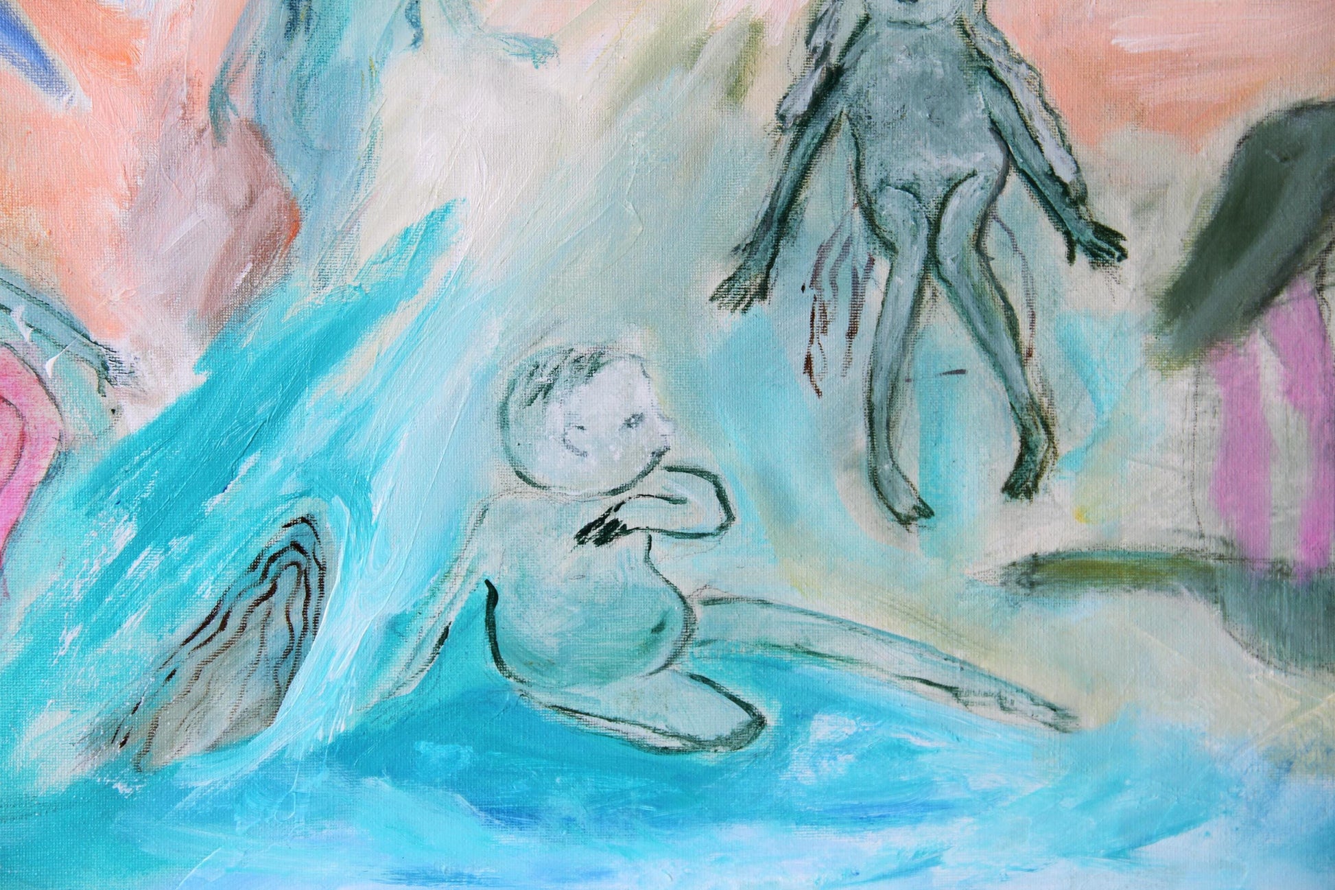 In this painting, I wanted to reflect the joy and fun of bathing in the sea in summer, with friends.