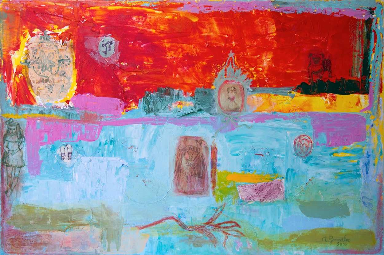 Print Giclee Art yellow blue pink gray turquoise decor modern wall art by Ana Gonzalez
